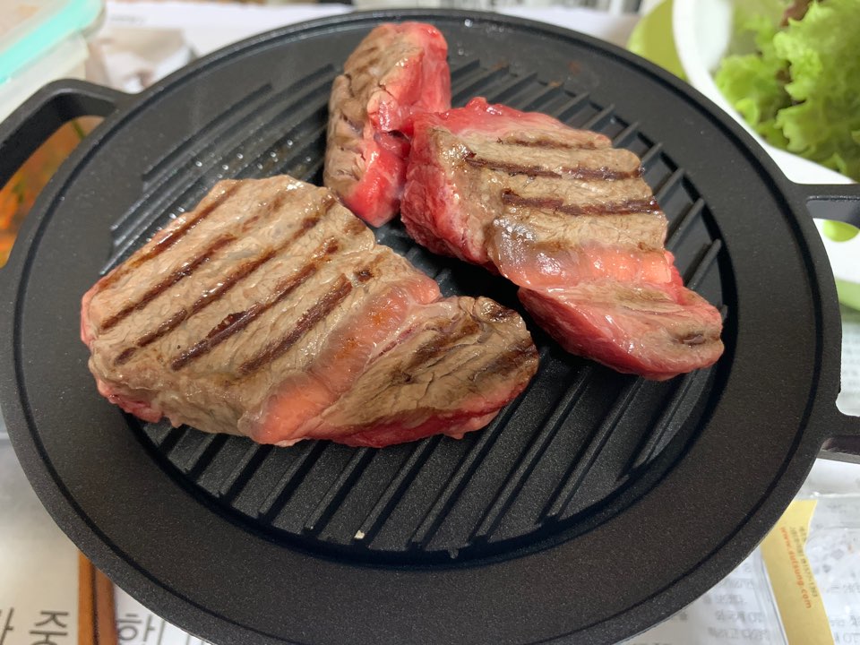 위 사진처럼 저렇게 불판의 자국을 남기며 아주 잘 구워졌다...