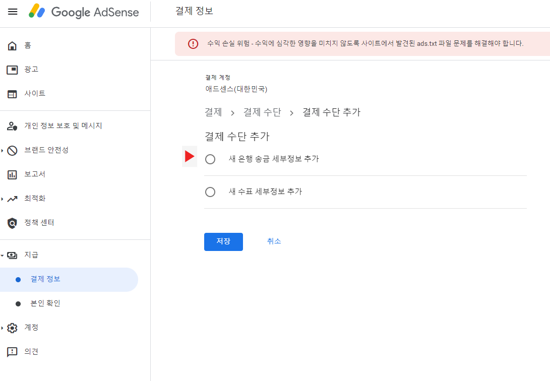 에드센스 홈페이지 -> 계정 로그인 -> 지급 클릭 ->결제정보 클릭 -> 결제 수단 관리 클릭 ->기존계좌 삭제 -> 결제 수단 추가 클릭 -> 새 은행 송금 세부정보 추가 선택!